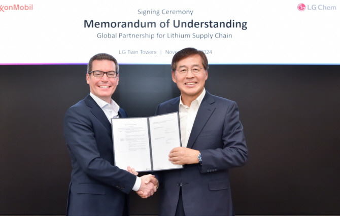 [LG화학 신학철 대표는 “세계 최대 에너지 기업 중 하나인 엑손모빌과 리튬 공급망을 구축하는 것은 큰 의미가 있다”며 “필수 광물에 대한 글로벌 공급망에서 LG화학의 경쟁력을 계속 강화해 나갈 것”이라고 말했다.