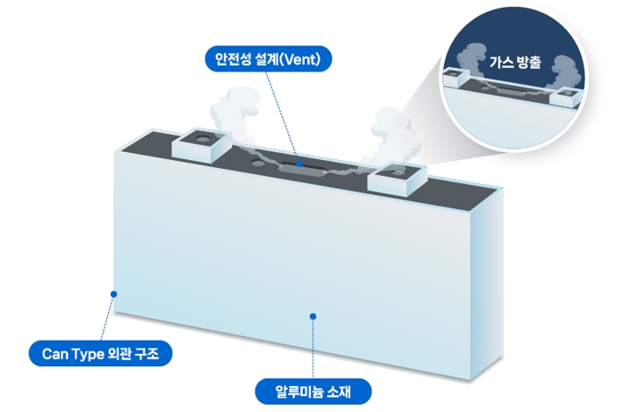 또한 삼성SDI의 각형 배터리에는 안전성 강화를 위한 설계 기술들이 적용되어 있다. 외부 요인으로 과충전, 과전류가 발생하여 배터리 내부의 온도와 압력이 증가했을 때, 가스를 방출할 수 있도록 설계된 ‘벤트(vent)’가 대표적이다. 특정 전류가 흐를 때 회로를 끊어버리는 ‘퓨즈(fuse)’도 과충전 시 발생할 수 있는 위험을 차단한다.