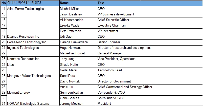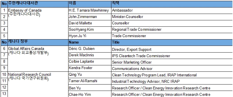 참고1 캐나다 비즈니스 사절단 및 대사관 참석자 명단