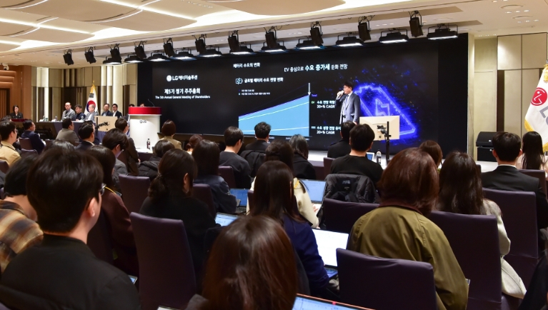 LG에너지솔루션이 20일 오전 서울 여의도 LG트윈타워에서 CEO 김동명 사장 및 주요 경영진, 주주 및 기관 투자자들이 참석한 가운데 ‘제5기 정기주주총회’를 개최했다.