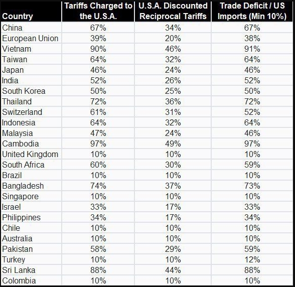 아래는 백악관이 소셜 미디어 플랫폼 X에 게시한 여러 표 중 첫 번째 표입니다. 여기에는 중국, EU, 영국, 동남아시아에 대한 자세한 내용이 나와 있습니다.