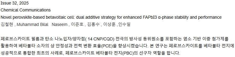 DGIST 인수일 교수팀, 차세대 페로브스카이트 베타전지 개발