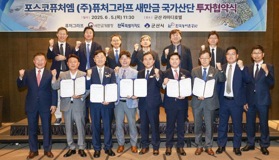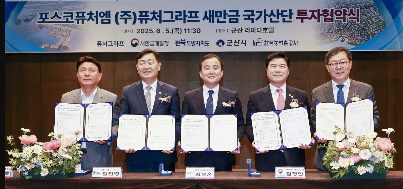 ㅇ 협약식에는 김관영 전북특별자치도지사, 김경안 새만금개발청장, 강임준 군산시장, 엄기천 ㈜포스코퓨처엠 대표이사, 김정훈 ㈜퓨처그라프 대표이사 등이 참석했다.