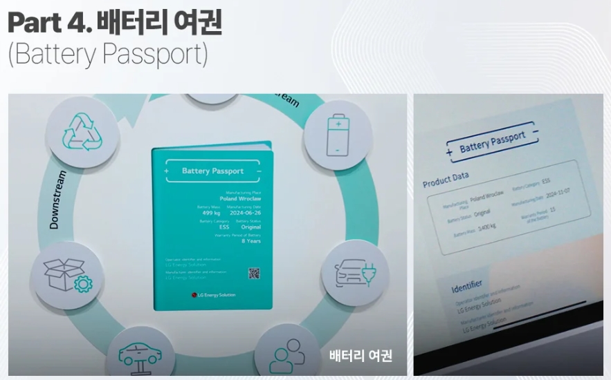 이번 전시의 또 다른 하이라이트는 LG에너지솔루션이 최초로 선보인 ‘배터리 여권 시스템’입니다. 배터리 여권은 성능, 원재료, 탄소 발자국 등의 배터리 전 과정의 데이터를 디지털로 통합 관리할 수 있는 시스템으로, 향후 재사용률과 재활용률을 높이는 데에도 핵심적인 역할을 할 것으로 기대되고 있습니다. 이에 LG에너지솔루션은 배터리 여권을 통해 공급망 전반의 투명성과 책임성을 강화하고, 보다 지속가능한 배터리 생태계 구축을 위한 전환점을 마련했습니다.