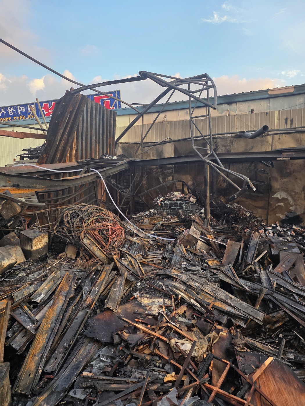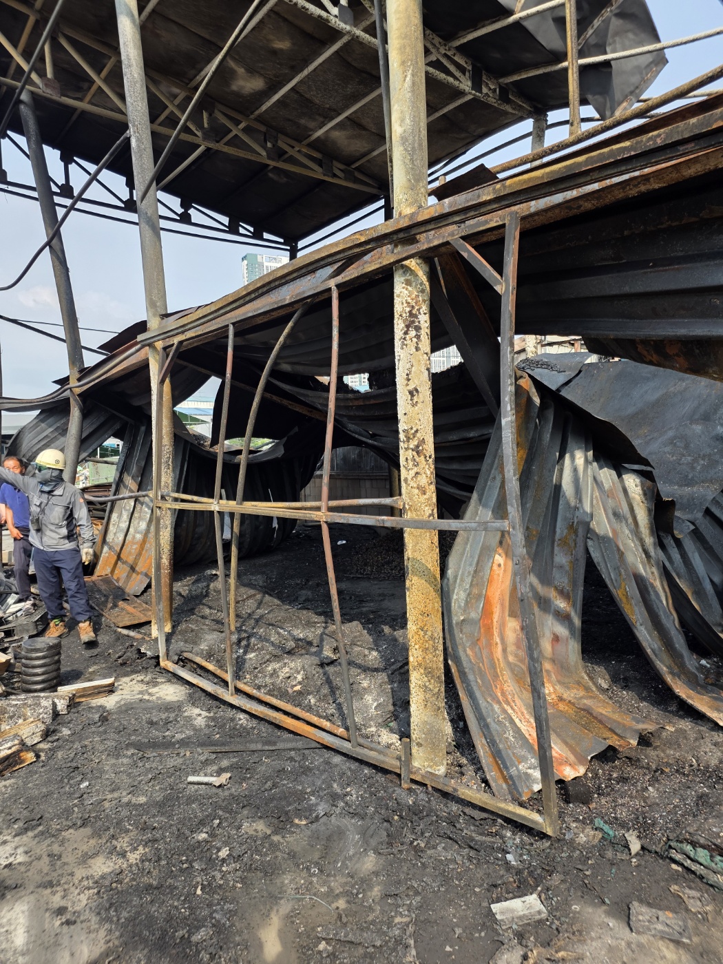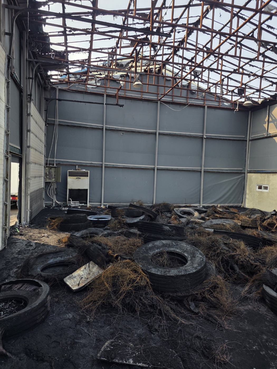 건물 지붕과 외벽이 모두 불에 타 앙상한 철골만 남았습니다.