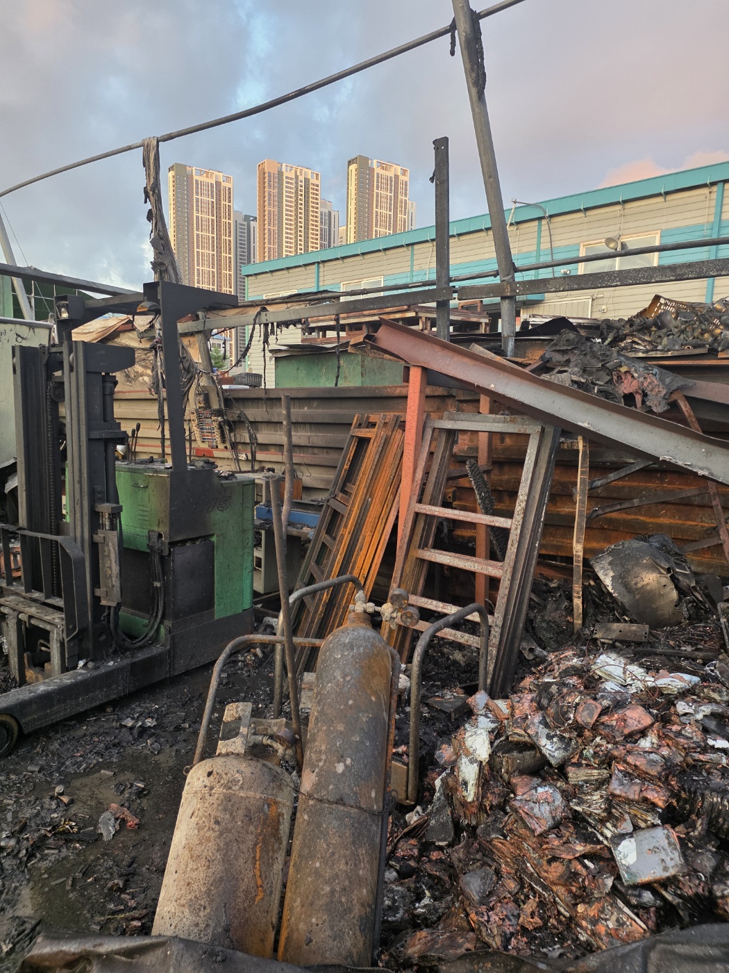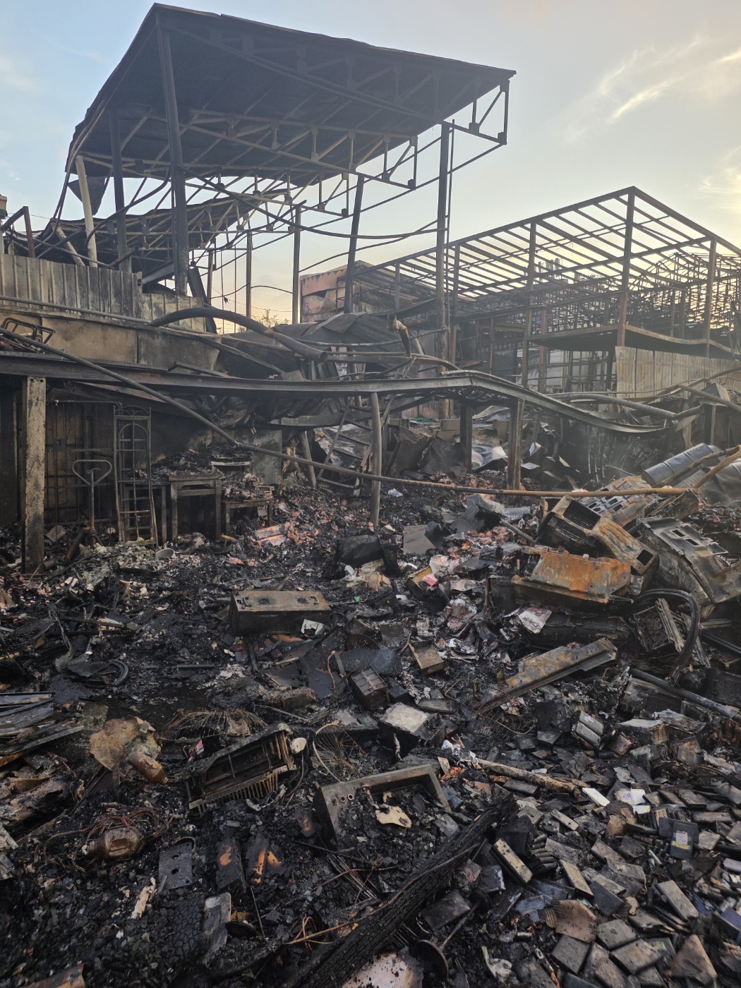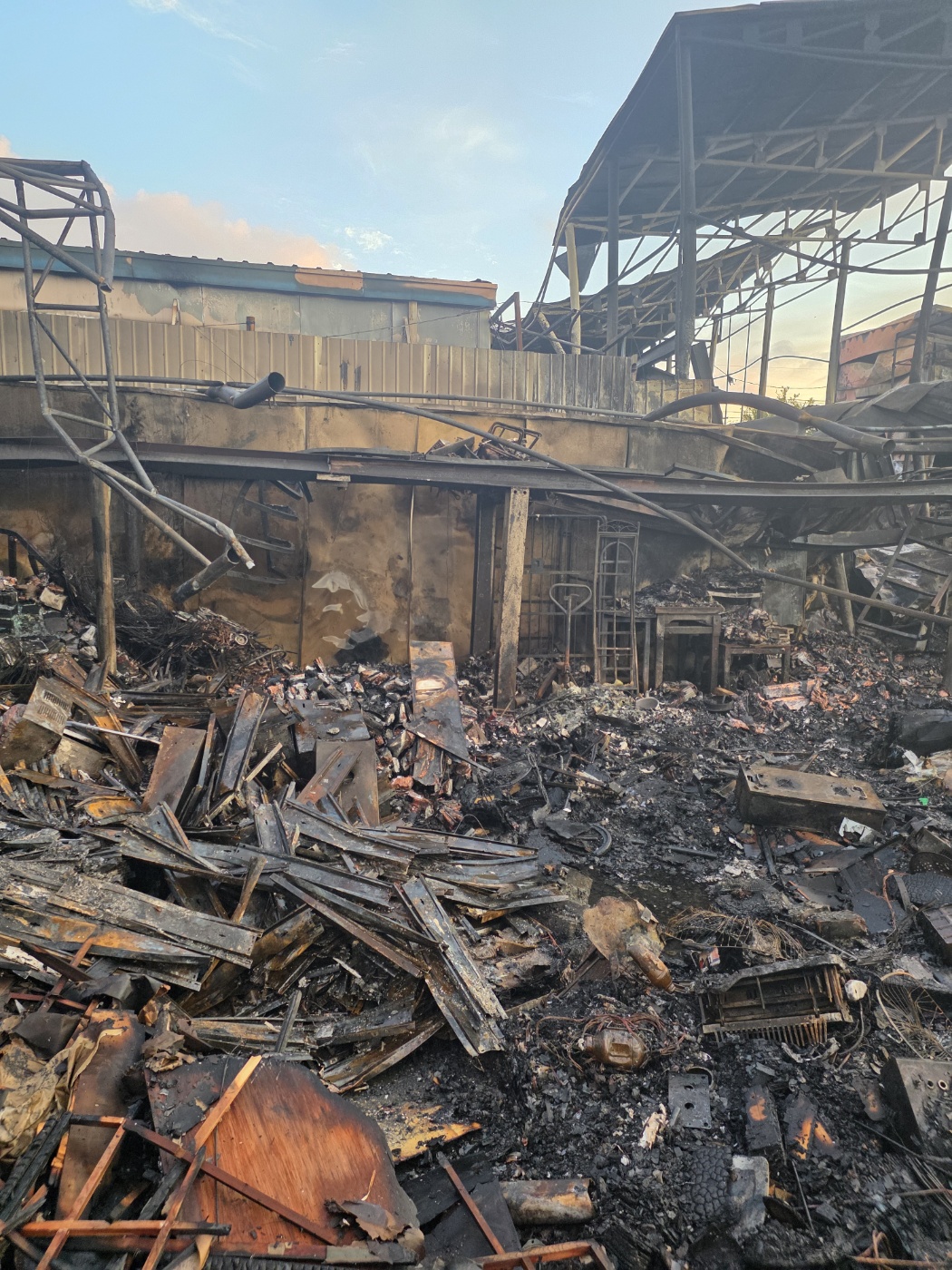 건물 지붕과 외벽이 모두 불에 타 앙상한 철골만 남았습니다.