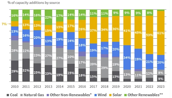 셋째, 캘리포니아와 뉴욕과 같은 주요 주를 포함한 여러 주에서는 전력망의 탈탄소화를 위한 노력을 계속할 것으로 예상되며, 태양광 발전의 증가가 중요한 역할을 할 것입니다.