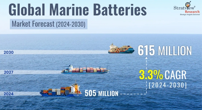 마지막으로, 해상 운송에 혁신을 일으켜 전 세계적으로 더욱 깨끗하고 효율적이며 지속 가능한 운영을 가능하게 함으로써 글로벌 해양 배터리 시장은 미래 해양 생태계의 중요한 기둥이 될 것입니다. 글로벌 해양 배터리 시장은 성장세를 보이고 있으며, 2024년 약 5억 500만 달러에서 2030년 6억 1,500만 달러로 급증할 것으로 예상됩니다.